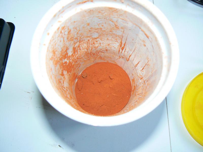 mijn vader was laatst bezig met de dakpannen en het hoopje dakpanstof leek wel op roest, dus heb ik het maar bewaard.