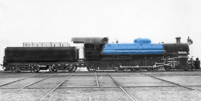 Daarnaast eentje met tender/machinistenhuis/rookkast zwart en de ketel in een glimmend donkerblauw. Als je echt een voorbeeld nodig hebt, dan wil ik dat wel zoeken.