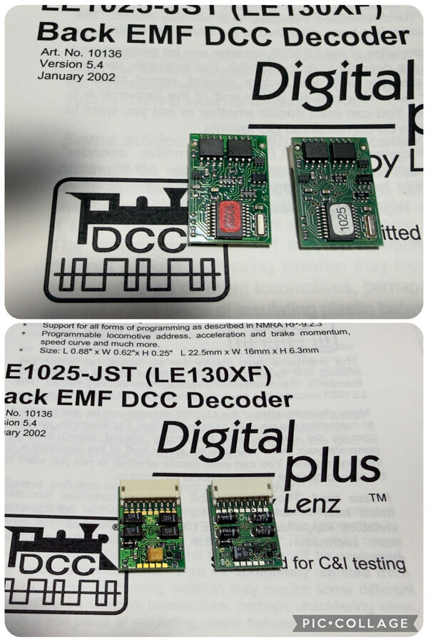 Heel duidelijk een Lenz LE1025. Hier twee voorbeelden uit mijn collectie. Ik gebruikte deze decoder toen ik net naar digital omschakelde de "early 2000's". Inmiddels allemaal vervangen door ESU decoders en af en toe verkoop ik de oude.