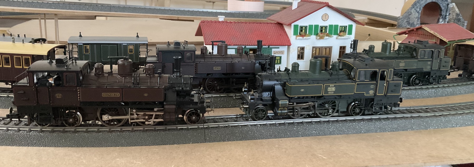 V.l.n.r Marklin 34121 DXII 267 Rheinheim Pfalz B. , Marklin 26535 (set) DXII 261 Sand Pfalz B., Marklin 26731 (set) DXII 2235 K.Bay.Sts.B., Marklin 37135 DXII 2222 K.Bay.Sts.B.