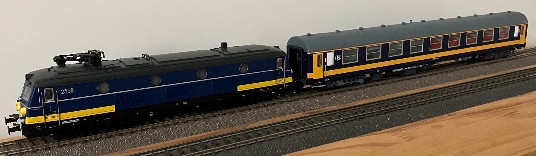 Het A rijtuig gekoppeld aan de Trix 2558.