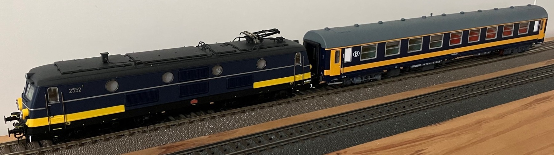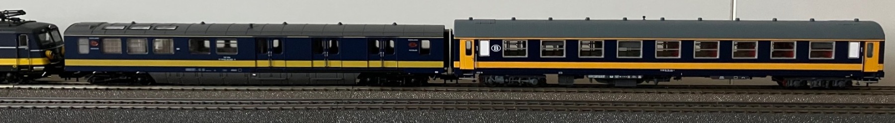 De nieuwe LS Models "oude" Benelux NMBS I4 A en AB rijtuigen, hier de versie met grijs dak.