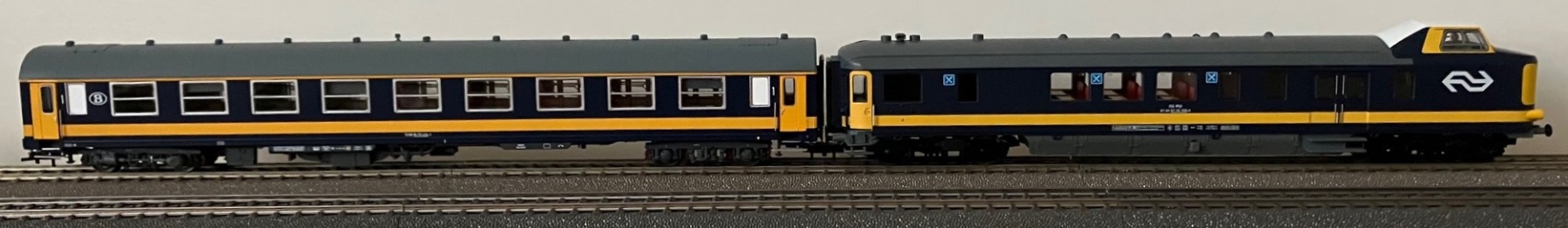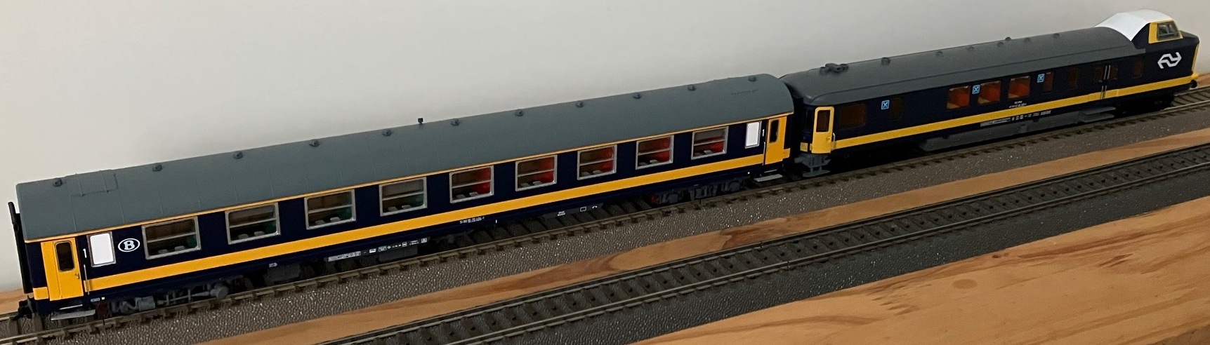 Het AB rijtuig gekoppeld aan een eveneens LS Models NS Plan W1 in Benelux kleuren (LS Models 44119).