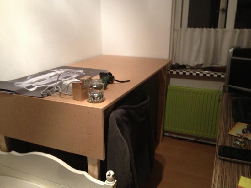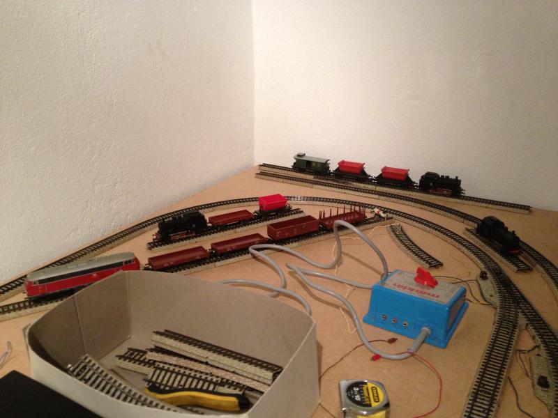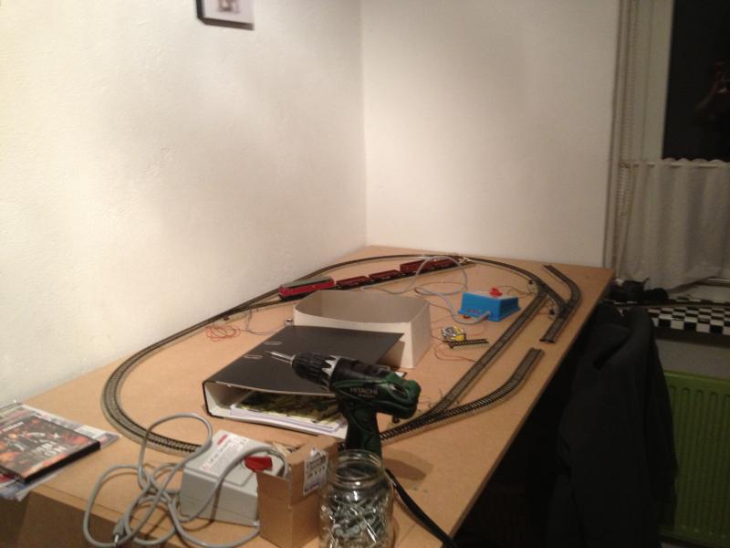 leuk zo'n begin maken. Ik zat te kijken naar je schaduwstation. Als ik het goed zie moet elke loc die je op de zijsporen wilt plaatsen in- en uitsteken op een heel kort stukje. Daar waar je zowat de tafel af rijdt. En de ruimte om te manouvreren is wel erg kort lijkt me. Je kunt nu alleen locs wegzetten. Nooit met een wagon of rijtuig.