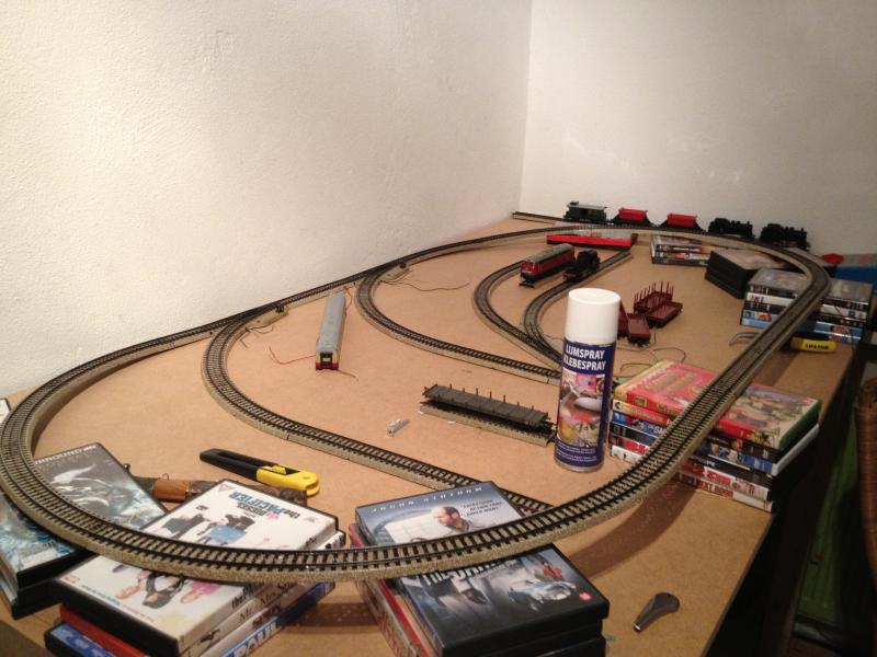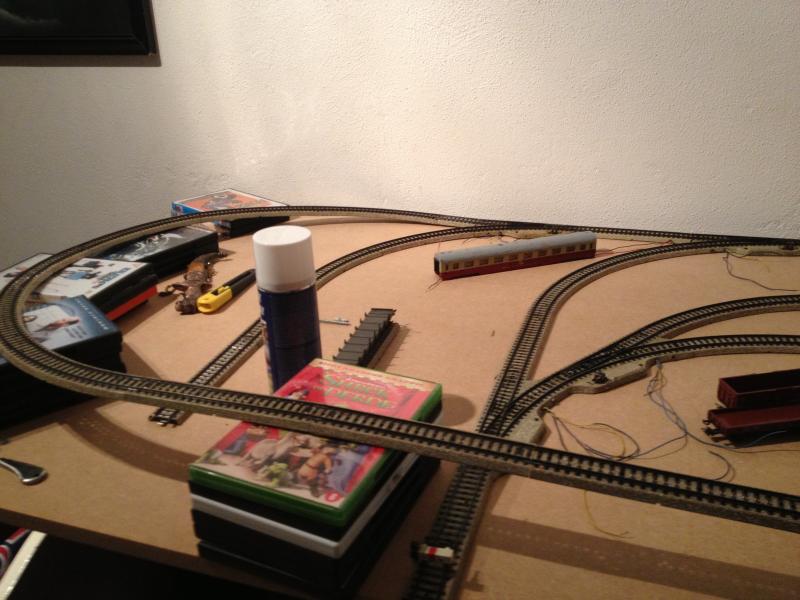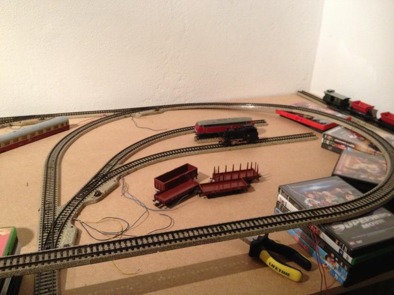 Op zo'n klein oppervlak is het wellicht handig om eens te kijken of de rangeersporen beter niet dwars gelegd worden maar parallel aan de lange kant op de een of andere manier.