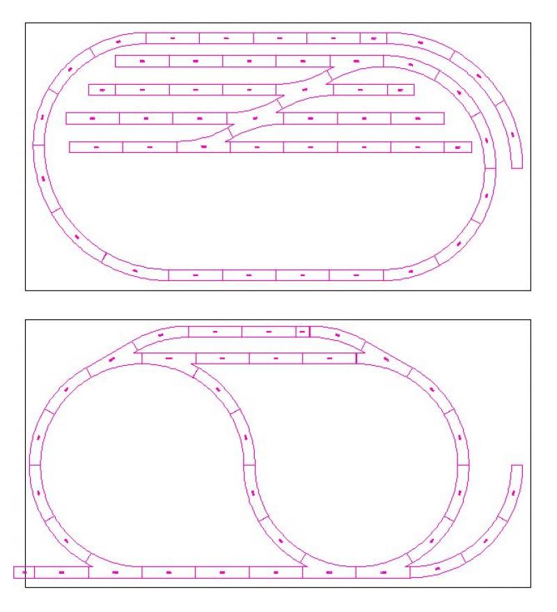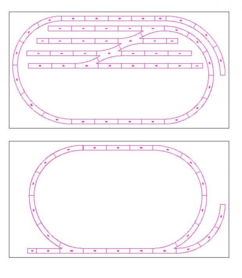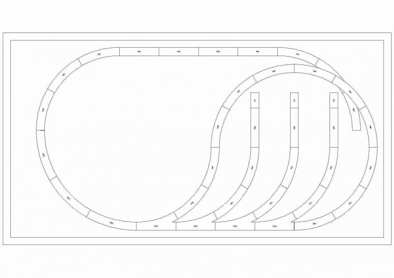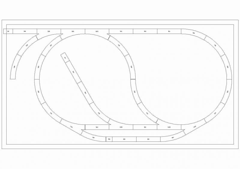 De laatste tekening geeft je niet eens ruimte om 2 rijtuigen neer te zetten,ik gok dat dat rechte stukje ong 20-25cm is maar meer ook niet