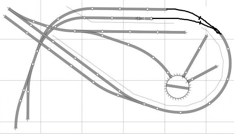 Daarbij krijg je ook iets meer ruimte voor sporen rond de draaischijf, die lijken me wat zinvoller.