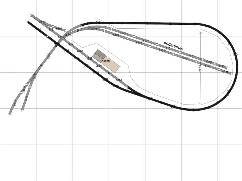 Ben het eens met Ferry, bochtwissels in een helling is vragen om problemen. Vooral in dit geval waar je een redelijk stijgingspercentage hebt.