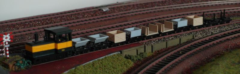 Minitrains set 5055: H0e Plymouth Dieselloc met 10 smalspoor lorries