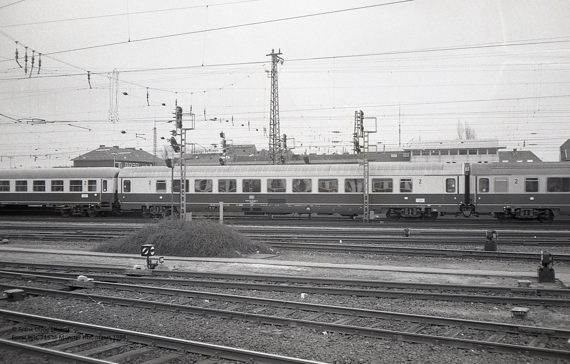 Ja hoor, wel in zwart-wit. Betreft IC 715 op een zondag in maart 1988 te Münster Hbf. Met rechts dus een Bpmz uit de voorserie...