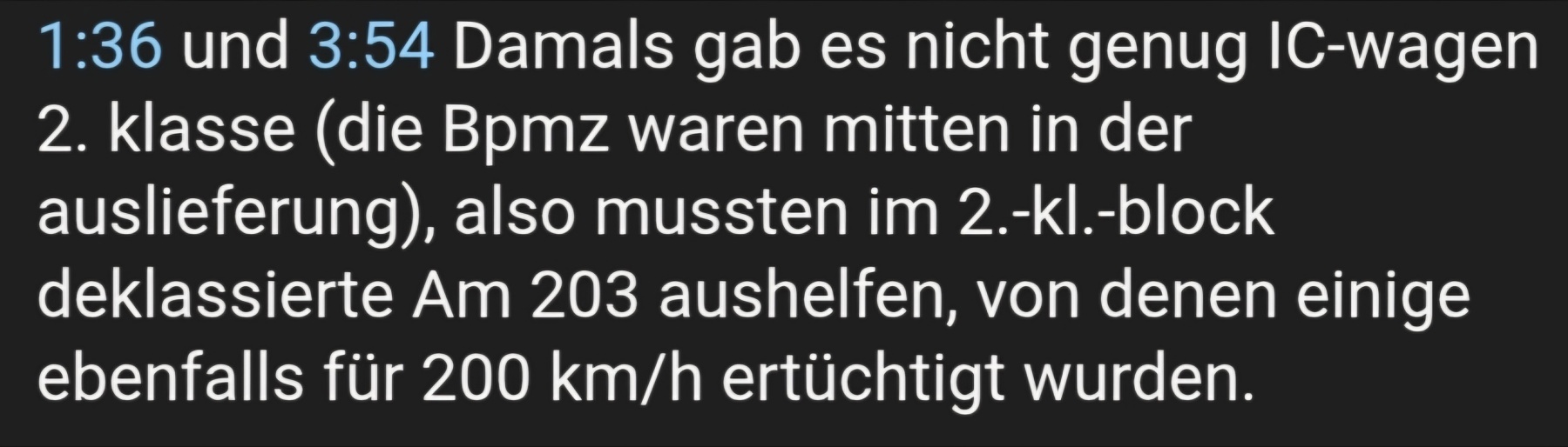 Vanwege een gebrek aan tweede klasse rijtuigen, reden er een aantal (hoeveel?)  gedeclasseerde Am²⁰³ ¹ in de IC '79.