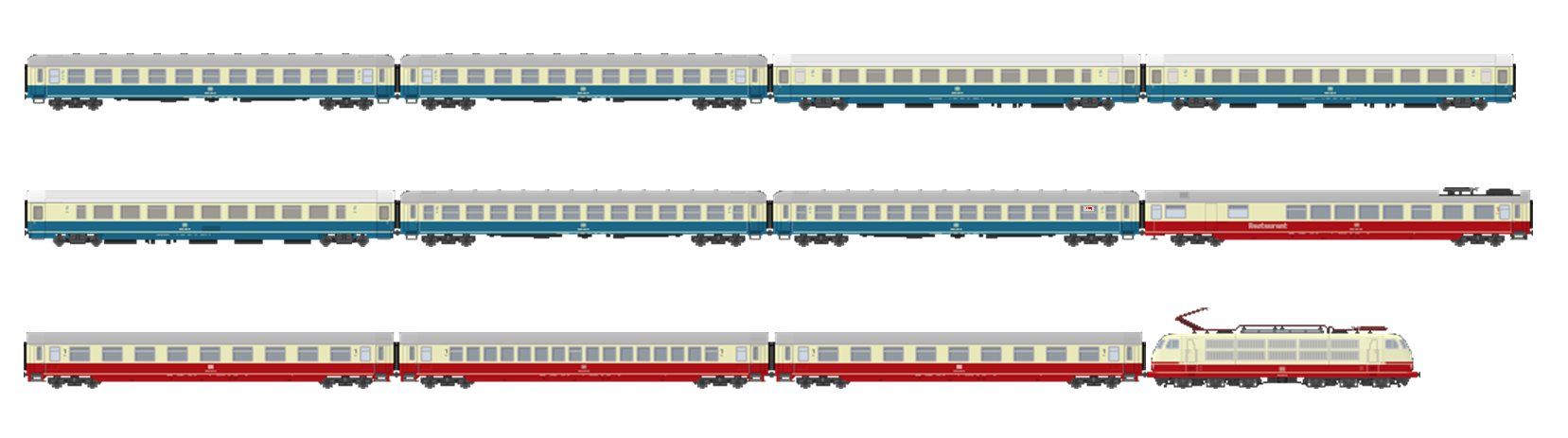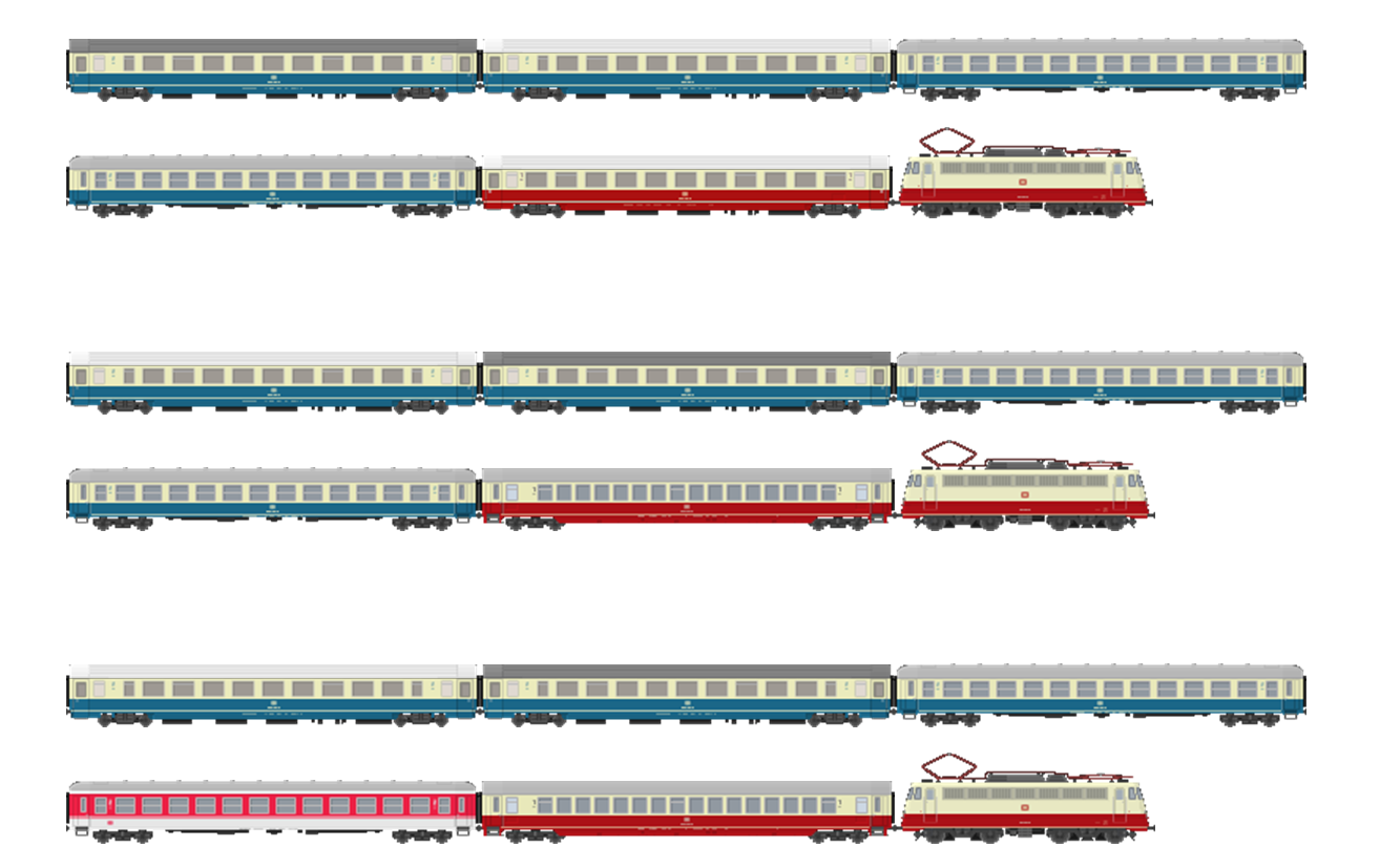 Alle rijtuigen Roco, behalve de ARmz (Piko). 103 is nog niet zeker.