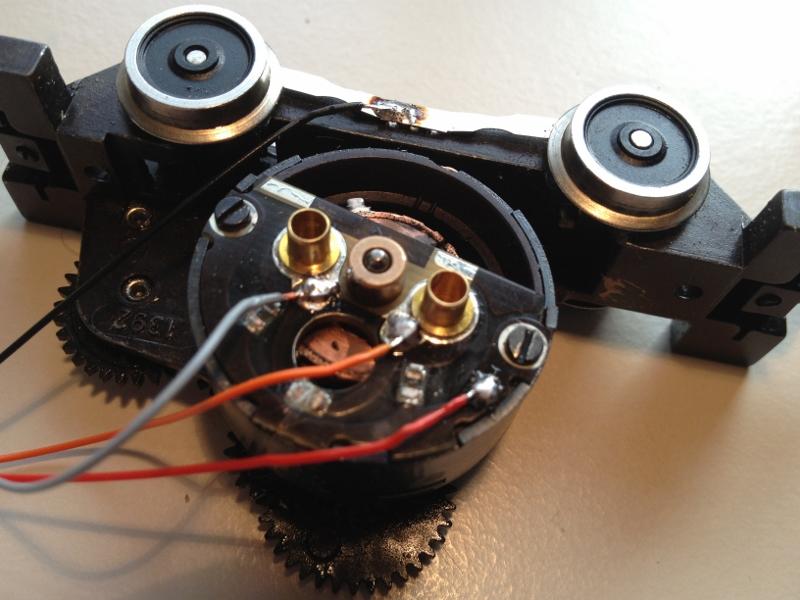 Het motorschild is geisoleerd zodat de koolborstelaansluitingen vrij zijn van de bevestigingsaansluitingen. HEEL belangrijk om digitaal te rijden en de motor ALLEEN maar aan de decoder vastzit.