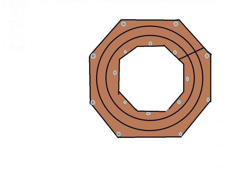Gewoon uit enkele plaat gezaagd, in achthoekige vorm.