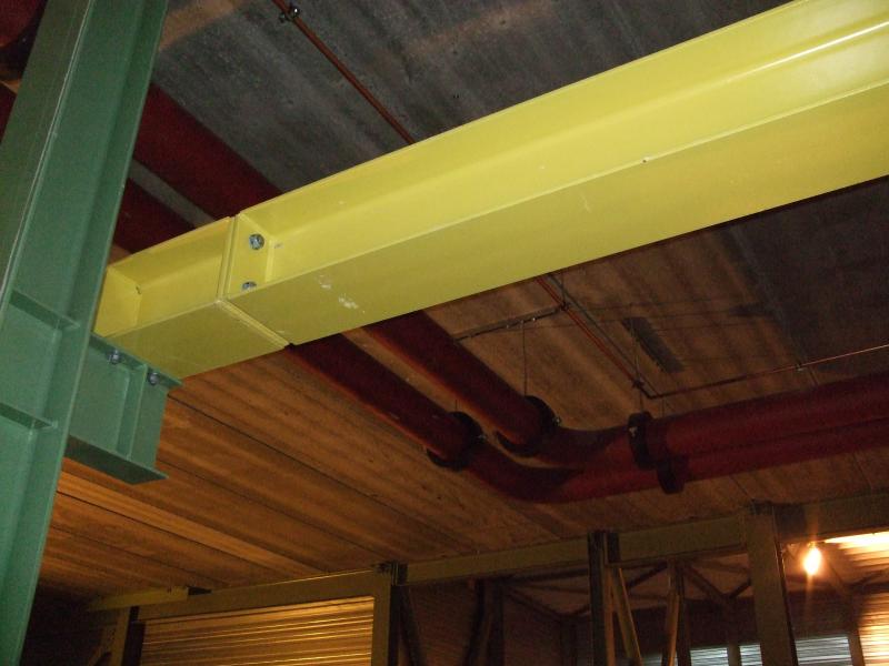 De kraanbaan is geel geschilderd, ook om duidelijk te maken dat hier verder niets aan mag worden opgehangen (bv. verlichting etc.).