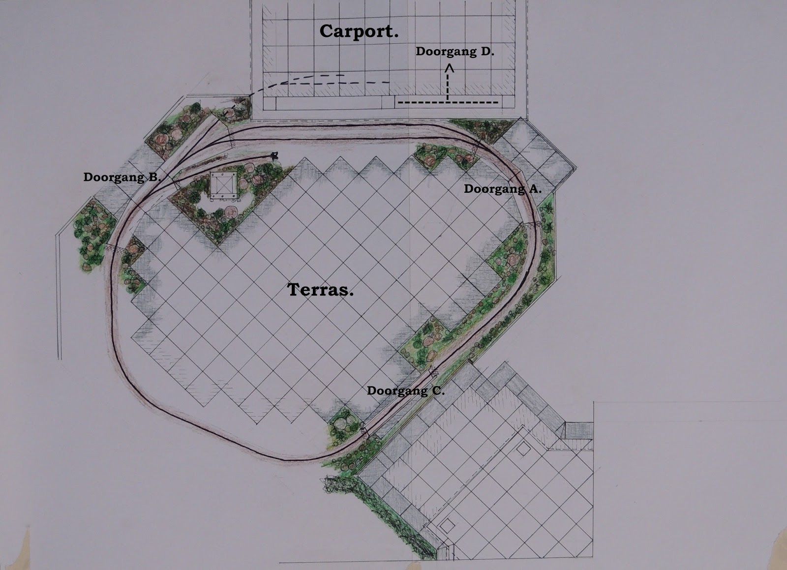Dan hebben we altijd een grote doorgang van het terras naar de schuur.