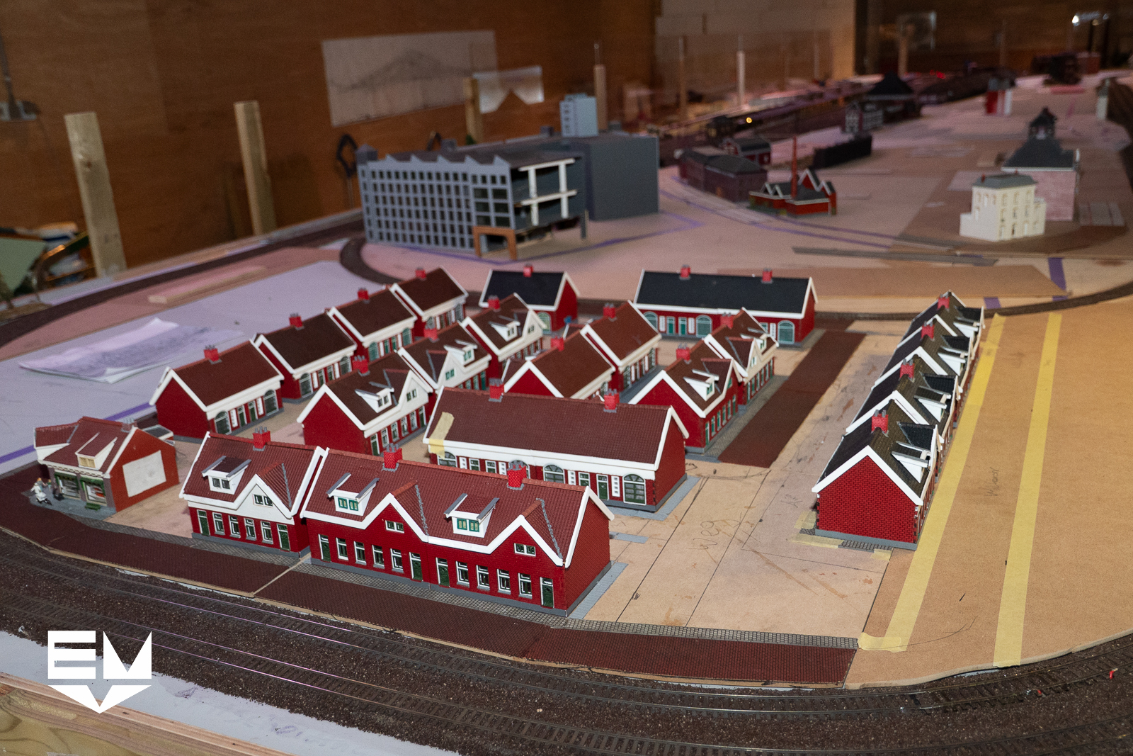Sinds de vorige post over Spoor op Vleugels is er wel van alles gebeurd, maar heeft met name zeer zeker ook betrekking op de hal waarin Spoor op Vleugels wordt gebouwd.We bouwen natuurlijk vooral door aan de scenery van het deel Boxtel-Eindhoven maar de hal zal ook wat op een andere manier worden aangekleed, het moet tenslotte een deel van het speelgoed museum worden. De museumbaan kan natuurlijk niet verplaatst worden, maar er is wel wat discussie ontstaan over hoe het overige deel moet worden aangepakt. Er komen vitrines waarin (model)spoor gerelateerde items getoond gaan worden. Er gaat komende week een interieurontwerper aan de slag. Daarvoor moeten we als EMV ook ruimte inleveren, want er is helaas niet genoeg ruimte voor alle drie EMV gerelateerde banen. Het Stationskwartier krijgt een andere plek en zal andere scenery krijgen, want de stad Eindhoven met zijn station wordt gebouwd op Spoor op Vleugels. De aankleding zal waarschijnlijk een Zwarte Woud opzet krijgen.
