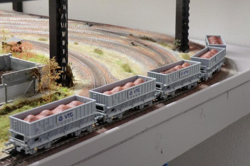 Later wanneer de begane grond klaar is, zullen de sets wagons verschijnen achter de locs.