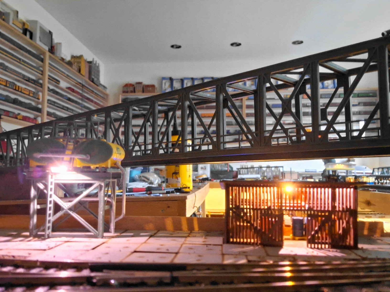 Ook de opslag werd voorzien van een 402 ledje. Er is een opslag van wat kisten onderdelen en olievaten die zo ook goed zichtbaar zijn.