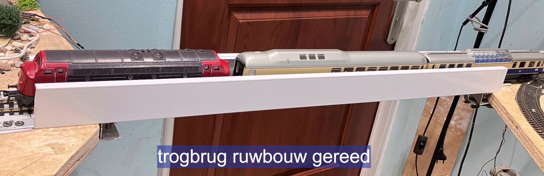 De trogbrug is nu nog een aluminium kozijnprofiel maar zal na het bewerken het uiterlijk van een trogligger van voorgespannen beton krijgen. De brug is een koppeling tussen twee tafels, robuust en vormvast. De brug moet gemakkelijk uit te nemen zijn, zonder extra handelingen tbv stroom verbindingen.