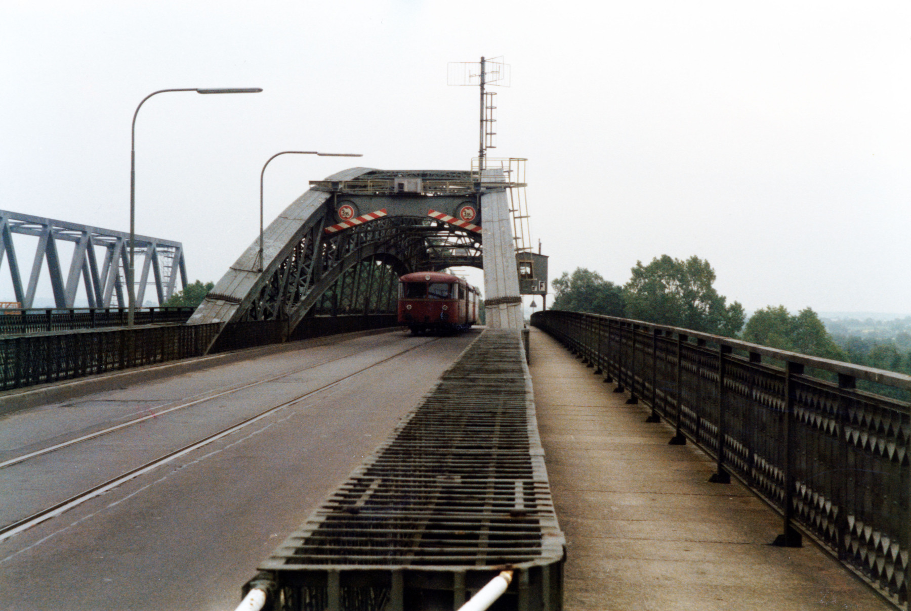 De trogbrug is al voor een deel van het plankier voorzien, hier wat foto's met als testbelasting een MEC met aanhanger en van de VW bus van de opzichter die met een stomert achter zich voort maakt om in Unterlenzkirch te geraken.