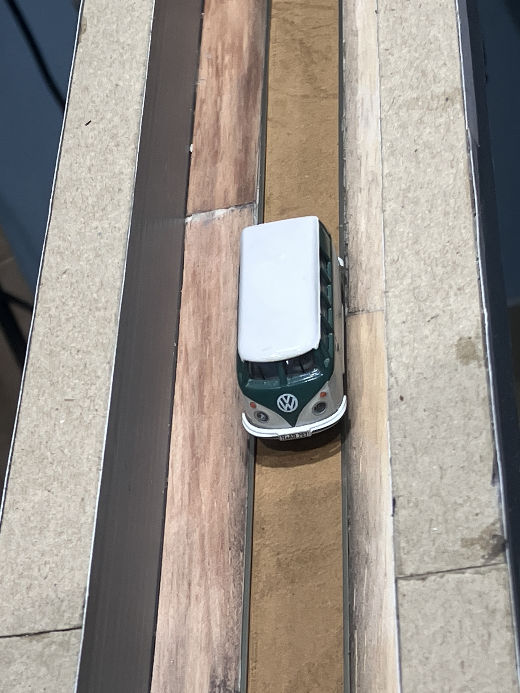 Nu de afwerking, eerst het spoor, daarna de opvulling met karton .