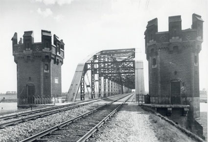 Met deze torens doet de brug een beetje denken aan de brug bij Remagen DL.