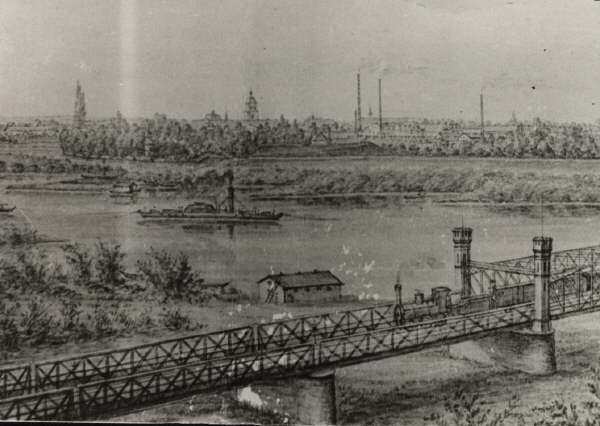 In de jaren 1876 en 1877 ontstond een 757 meter lange brug van smeedijzer, gebouwd door de Gutehoffnungshütte Oberhausen.