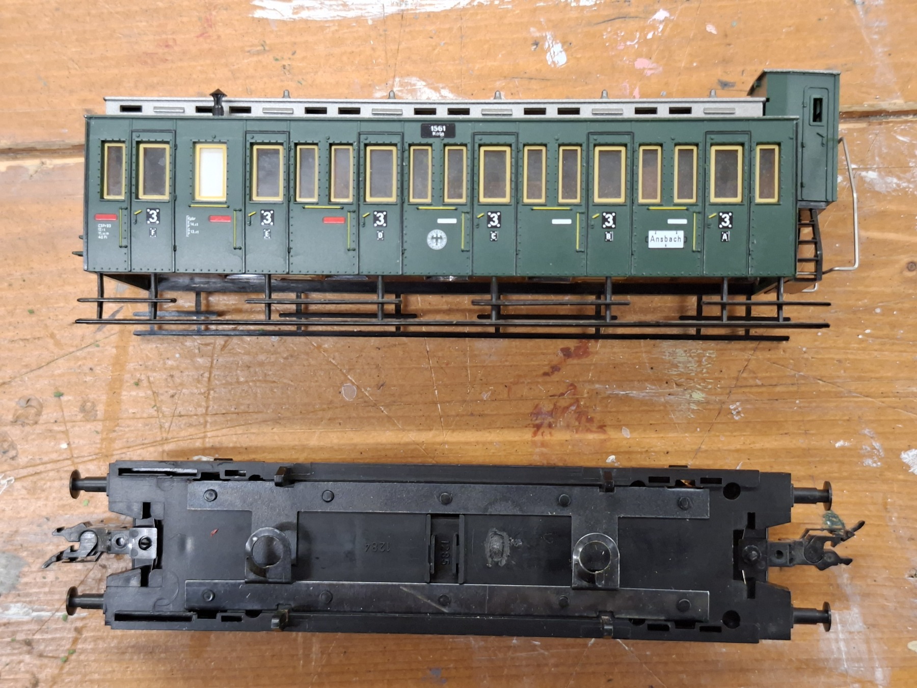 Dan heb ik twee Fleischmann 3 assige rijtuigen waar je zo een lampje in kan draaien. Dus stroomafname is er al. Maar hoe krijg ik de draadjes voor de elco aan die metalen strippen in het rijtuig?