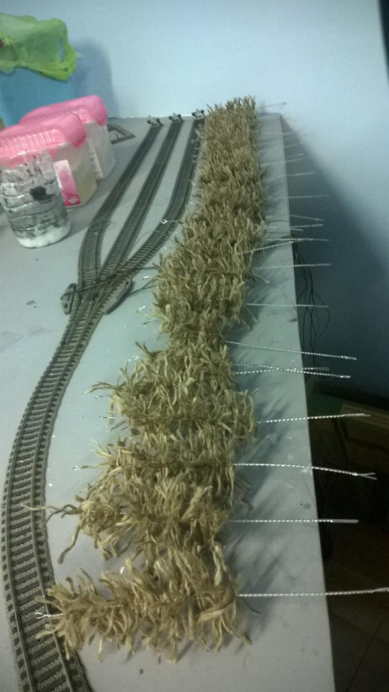 Op de besneeuwde berg moeten wat besneeuwde denne-boompjes komen. Vandaag een eerste poging om zoiets te maken. De stammetjes moeten nog.