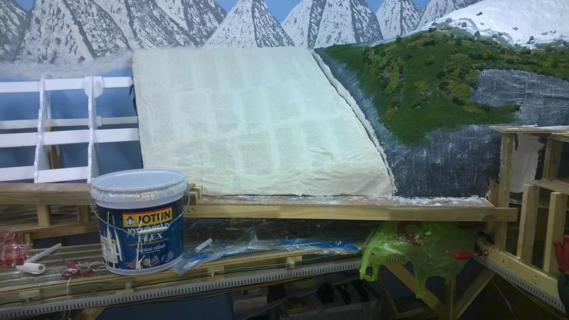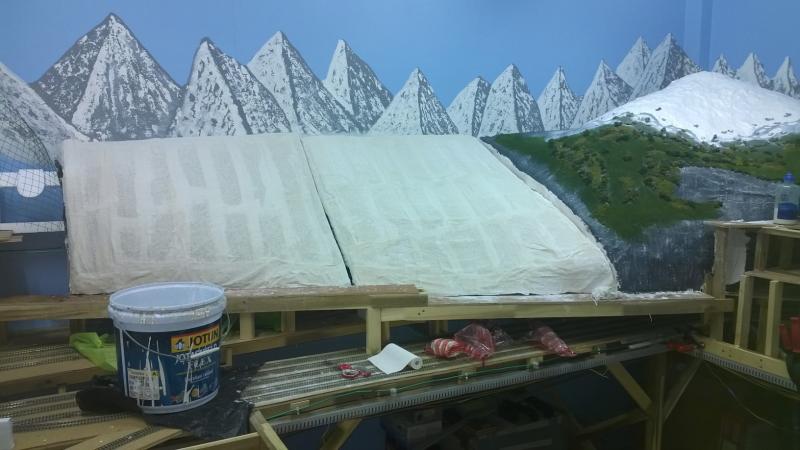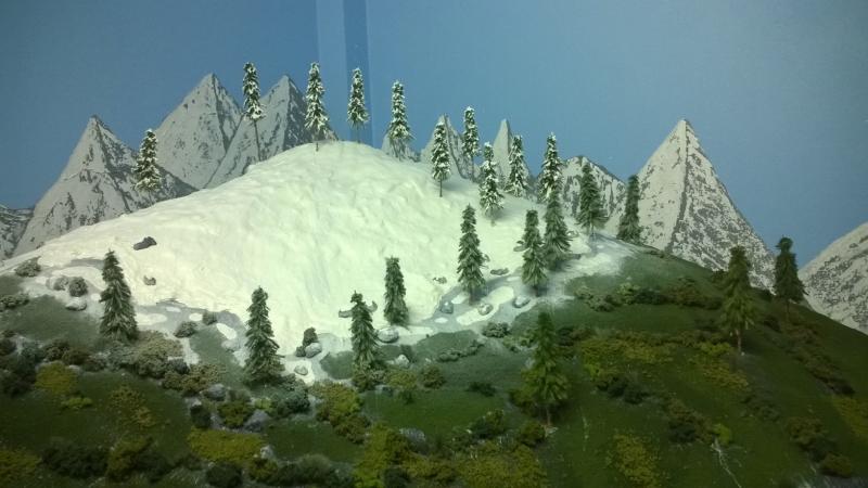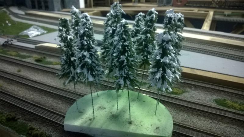 Vandaag de bevroren en besneeuwde boompjes geplaatst op de bergtop. Later komen nog wat wintertaferelen zoals een wintersport-pension, ski-sleeplift en wat skiërs in de sneeuw.