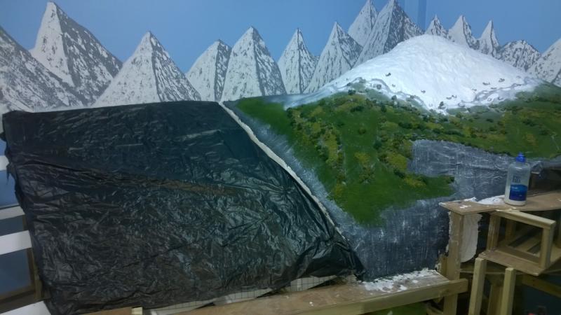 De naad tussen de berg en het uitneembare deel wordt later gecamoufleerd door een waterstroom die als los element op de berg en uitneembaar deel wordt geplaatst.