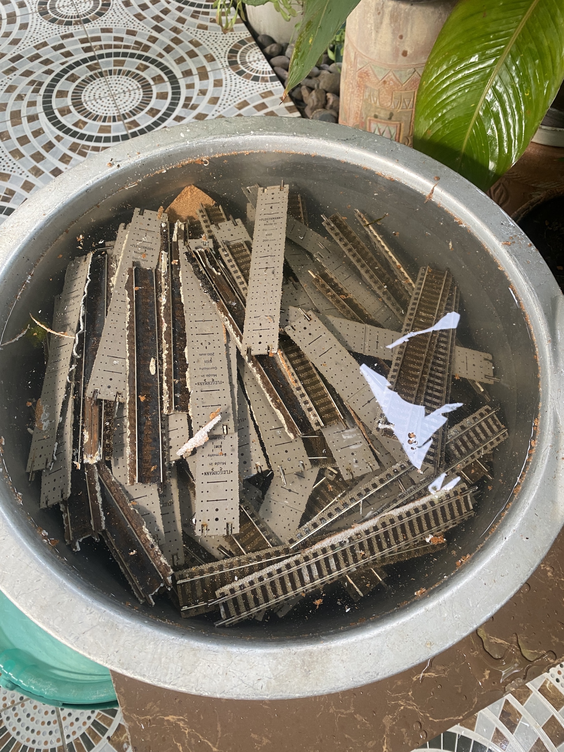 Vandaag maar weer aan de slag met het reinigen van de rails.