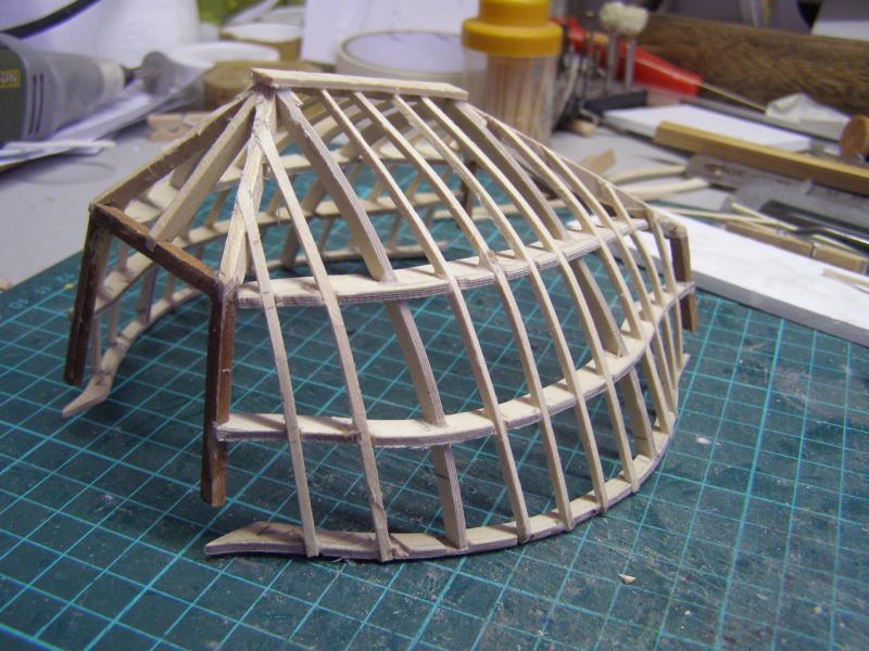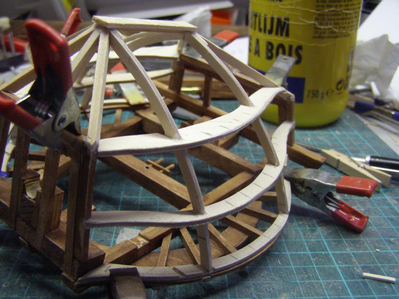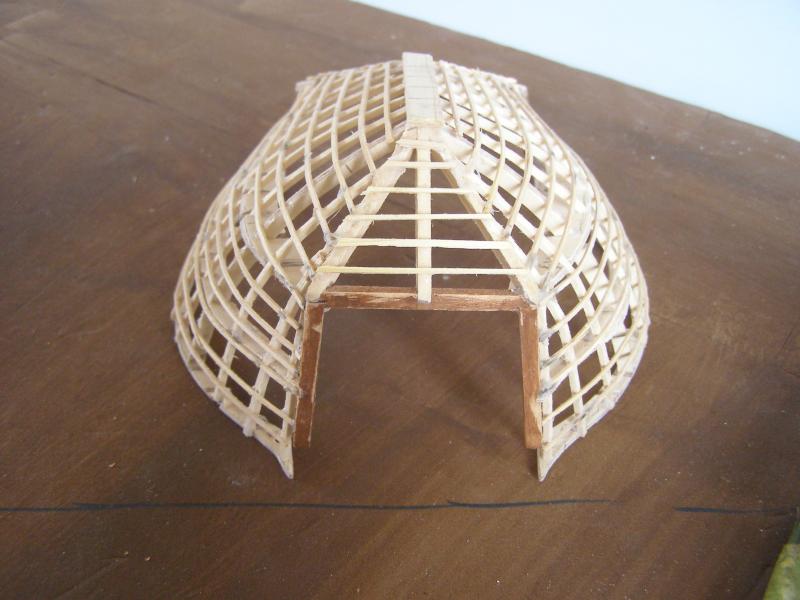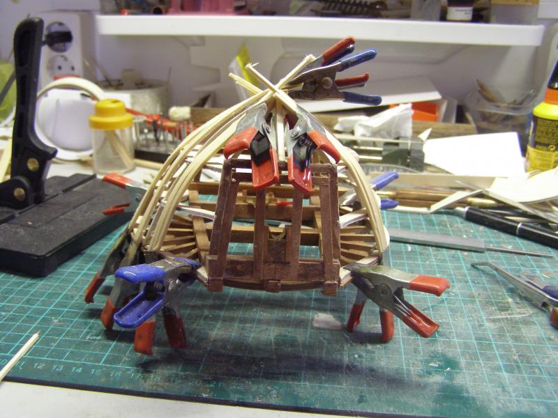 dan de verticale spanten, deze eerst in het water gelegd zodat ze makkelijker buigen.