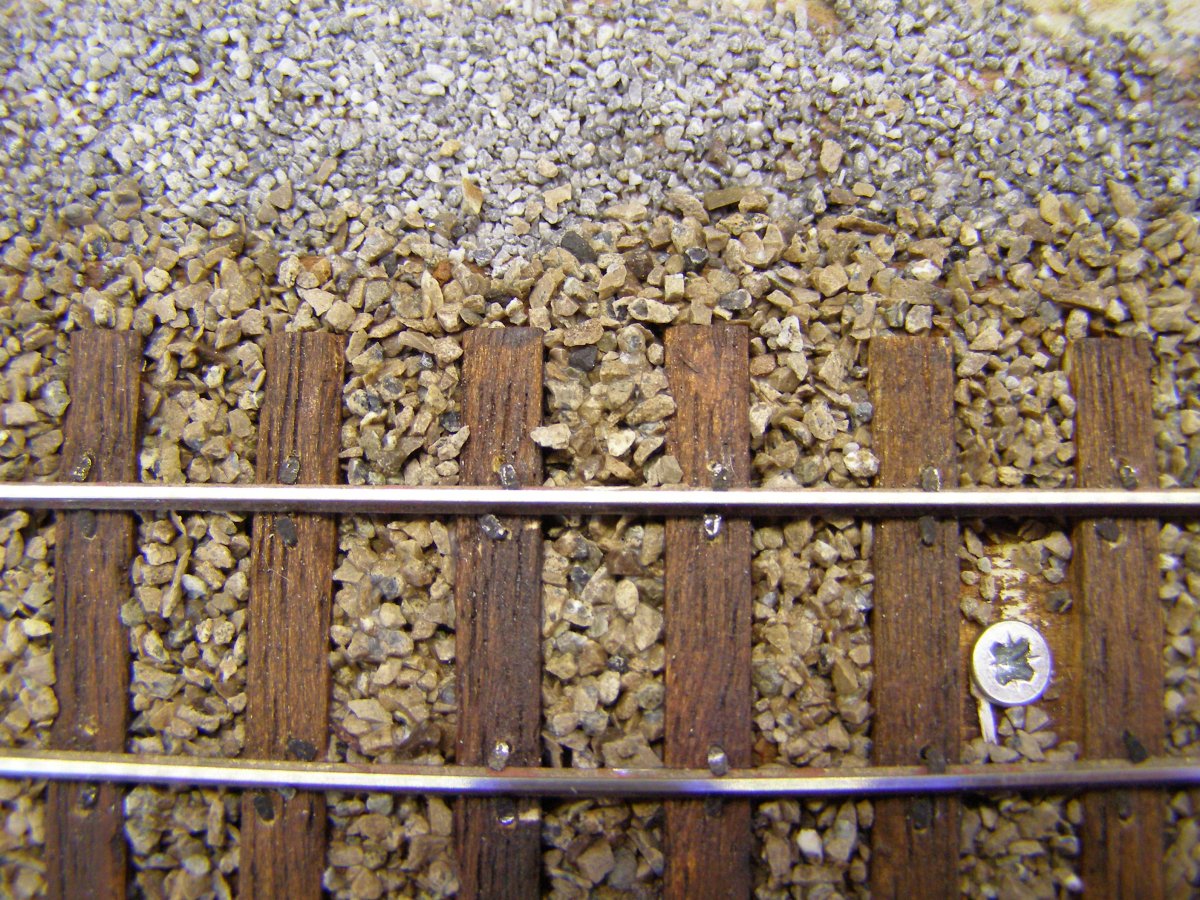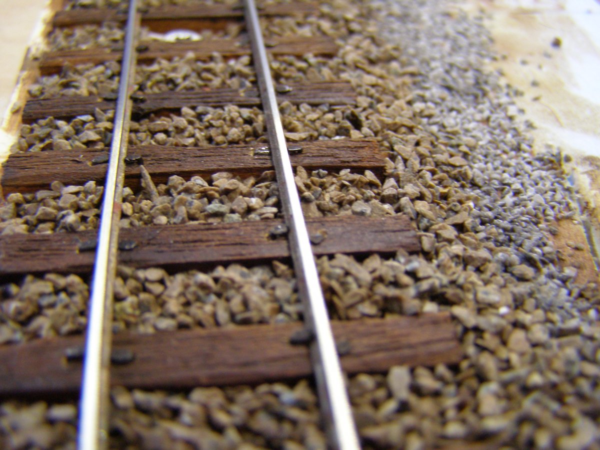 Om te zien of de kleur van het ballast me bevalt,ook een stukje rail voorzien van ballast.