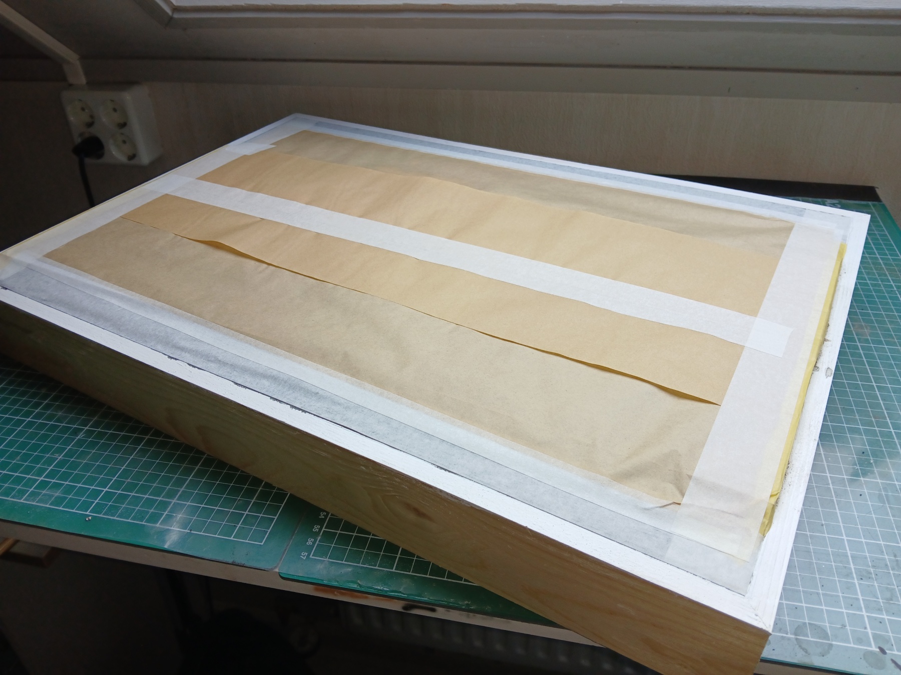 En dat is ook weer klaar, dus nu andersom afgeplakt om, nu het nog kan, even een knikkerbus langs de randen te halen.