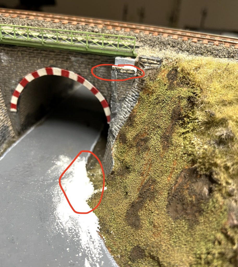 Nu op de foto valt me bijvoorbeeld op dat het rechter landhoofd wat hoog is t.o.v. de andere kant. Een klein strookje steentjesfoam zou dat moeten fixen.