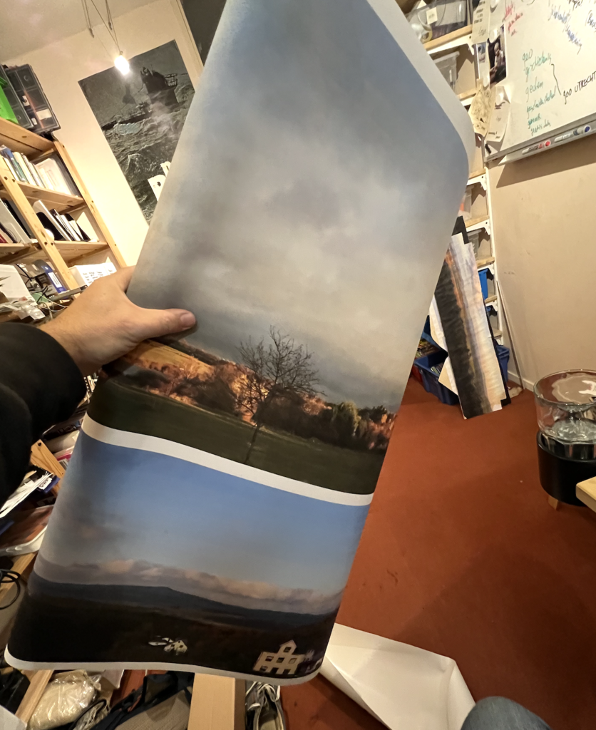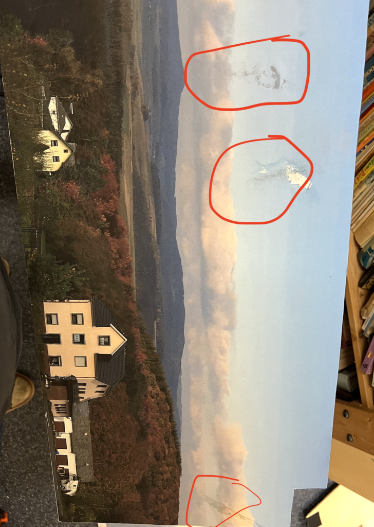 Het is dik papier, maar wel papier zonder enige coating. Ik had beter moeten weten, maar ik heb op het eerste deel van de achtergrond een drietal beschadigingen weten te krijgen. Later maar eens kijken of het een beetje te herstellen is en of het in de praktijk erg opvalt: