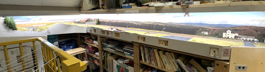 Na donderdag eerst een paar zaken afgehandeld die het beste konden gebeuren vóór de achtergrond op z'n plek stond. Zoals afdekkapjes (gemaakt van een plastic U-profiel) voor de dummy lamp bovenop de