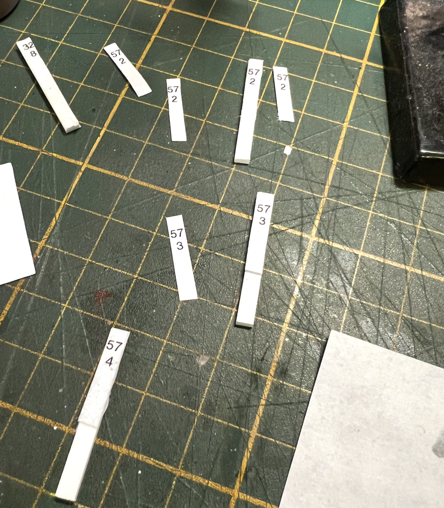 Uitgeprinte nummers (op gewoon printerpapier) plus een 3.2mm breed stripje evergreen: