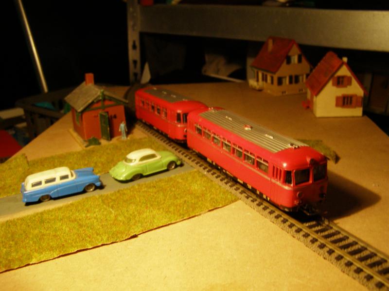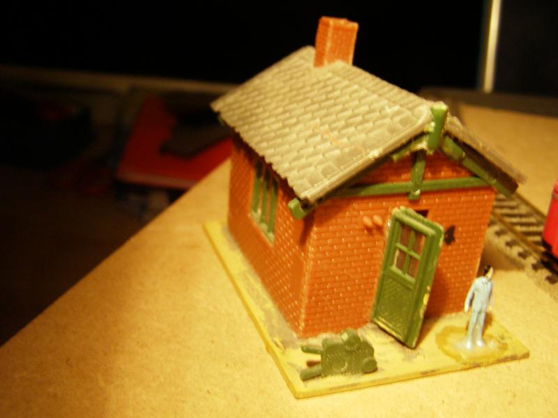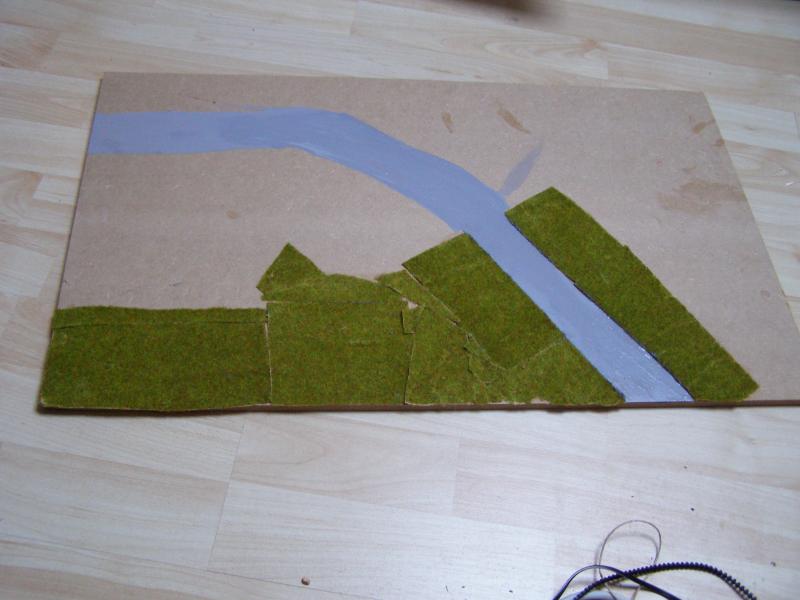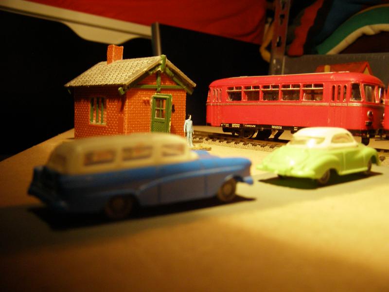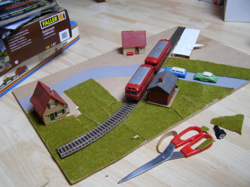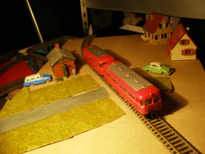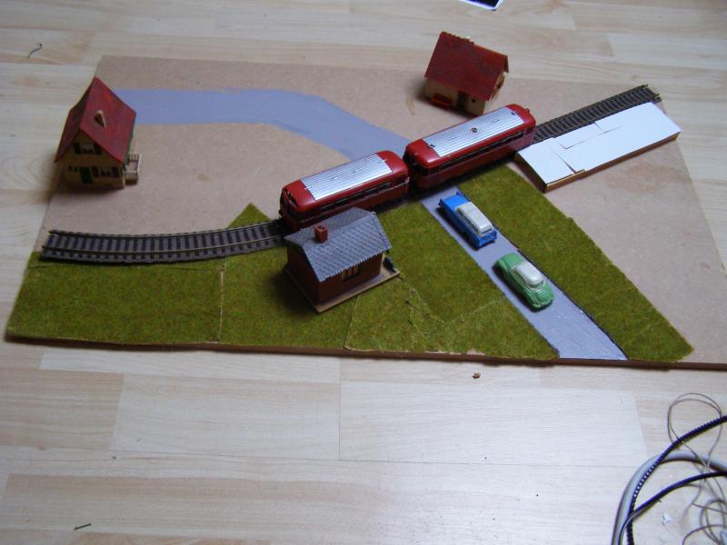 Verder komen er wat boompjes, struiken, lampjes, een overweg (wellicht zelfbouw) een riviertje met bruggetje. Uiteraard moet ik niet de poppetjes vergeten