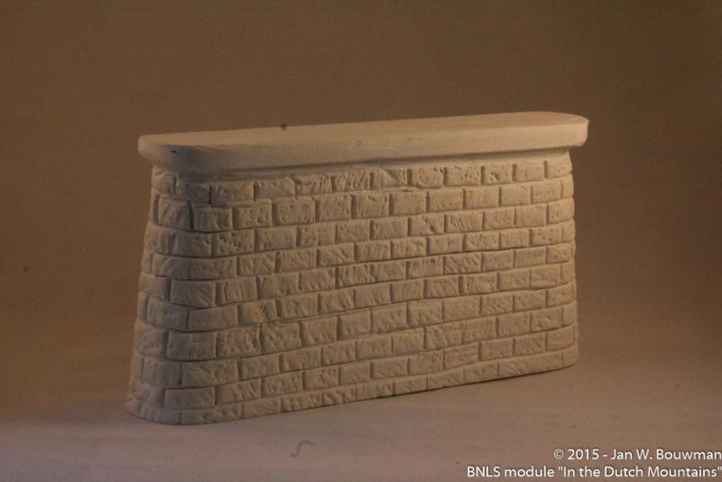 De natte-klei-methode bleek goed te bevallen, temeer omdat ik de oppervlakte van de stenen ook direct opgeruwd heb om ruw gehakte natuurstenen blokken te imiteren.