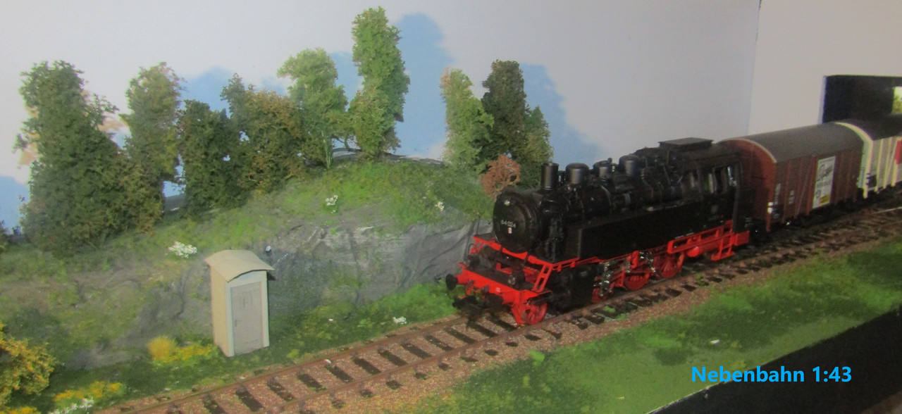Enne, mooie railbedding bij die BR64 in 1:43. Heb je de bielzen verzonken (dus gras-omgeving een centimeter opgehoogd) of liggen de dwarsliggers op het maaiveld?