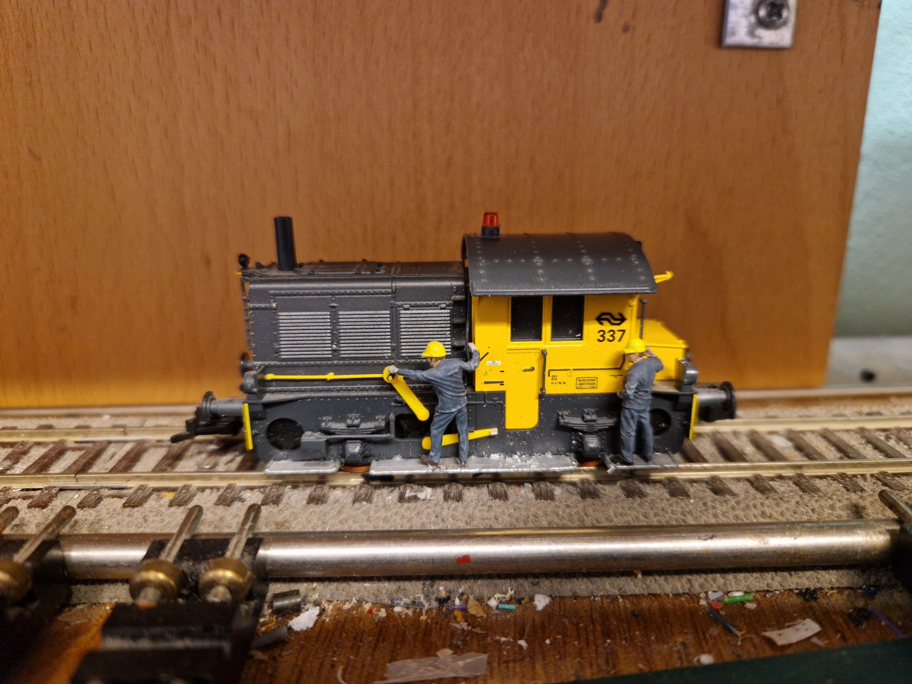 De rangeerder met de gele hes heb ik tijdelijk in de doos van de Sik opgeborgen.