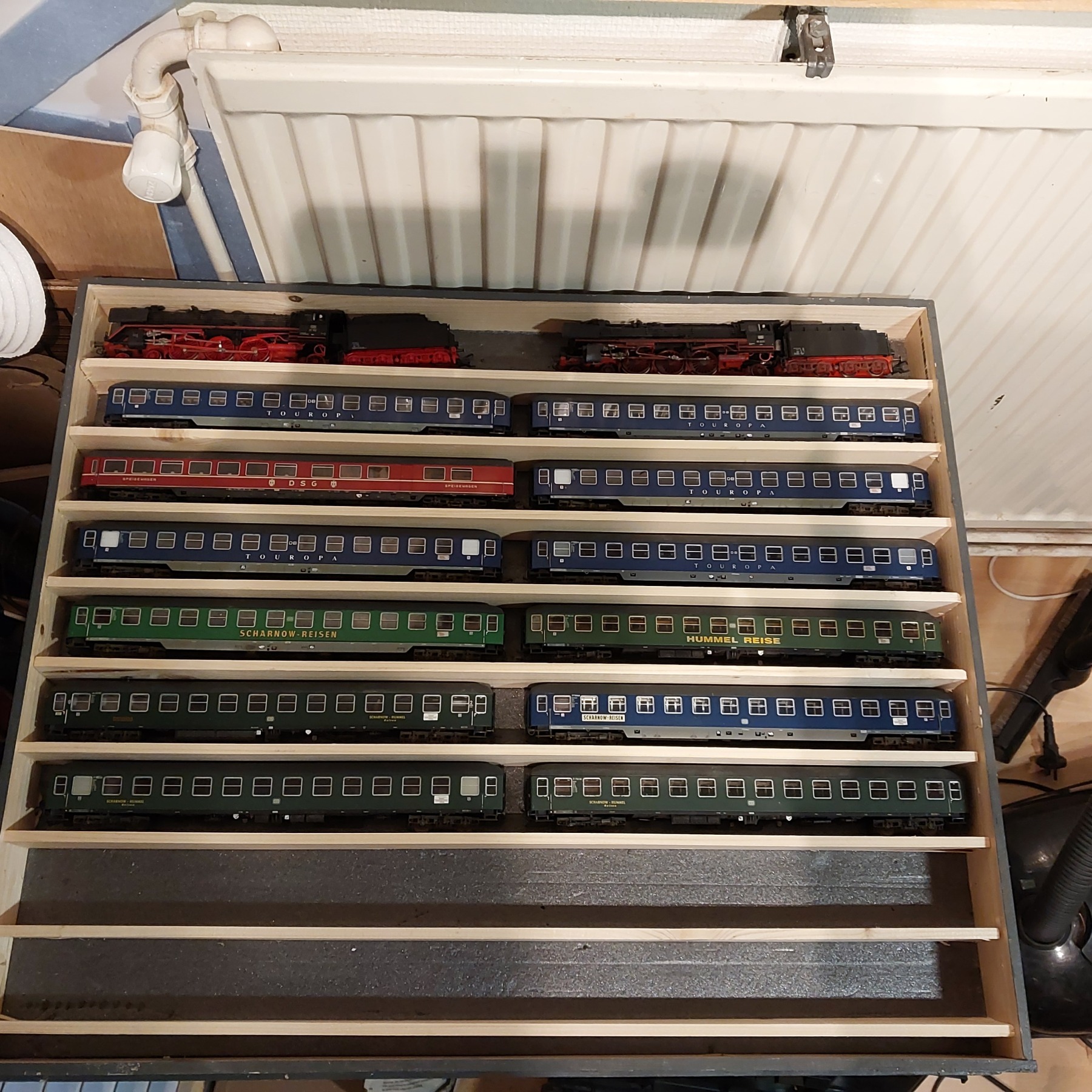 Huup, is het wel een Roco rijtuig? de koppeling lijkt op de foto aan het draaistel te zitten. Het destijds 1:100 overgenomen rijtuig uit het Röwa faillissement hat dit niet.Rob