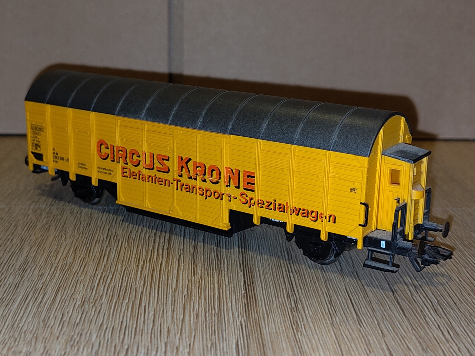 In één van de vele koopjeskratten (materieel zonder doosjes) vond ik deze leuke Preiser Olifant-transport-wagon.