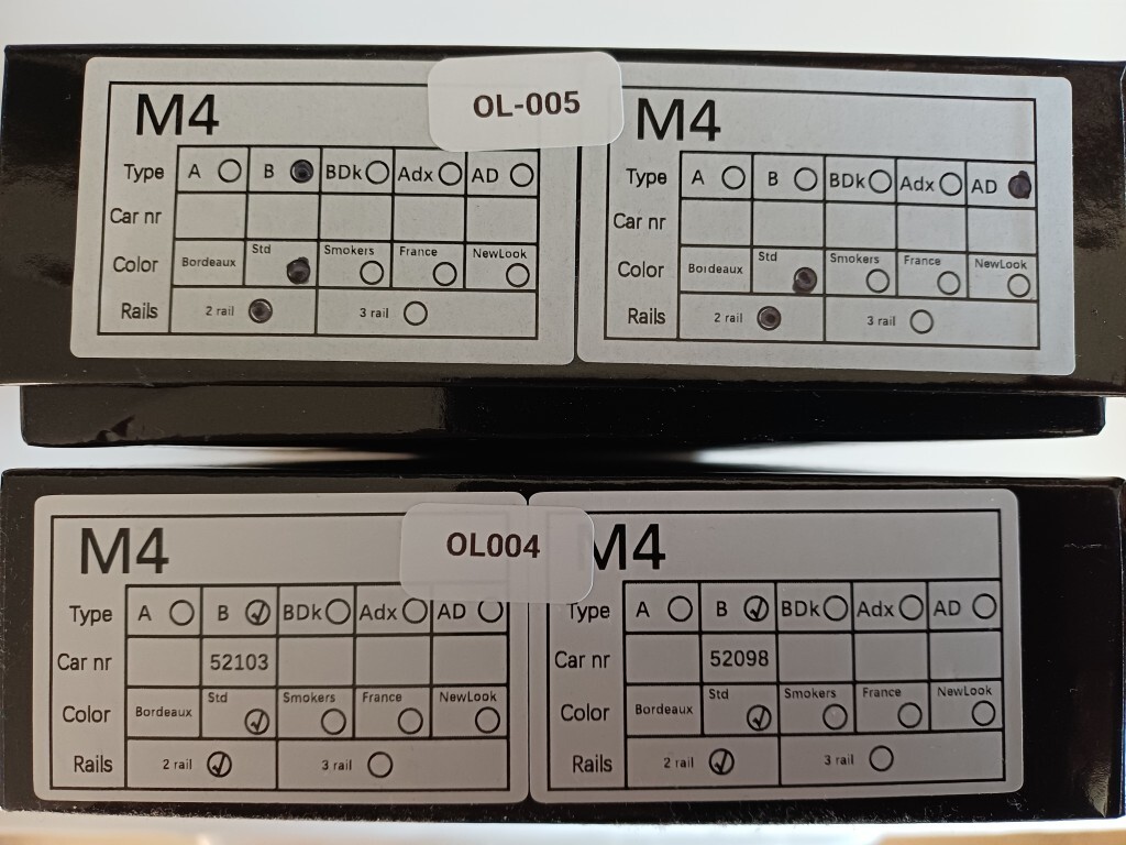Onbegrijpelijk dat de jarenlange gebruikte en dus zeer kenmerkende stam (B+)B+B+AD van Luik-Luxemburg v.v. niet als set te koop is. En je dus weer moest wachten tot er sets van 2 met die AD op de markt kwamen. Maar ja, waarom zou je luisteren naar de wensen van de klanten? Van alle rijtuigen zijn mallen. Van sets van 4 bestaat de doos. Maar combineren, nee, da's te moeilijk
