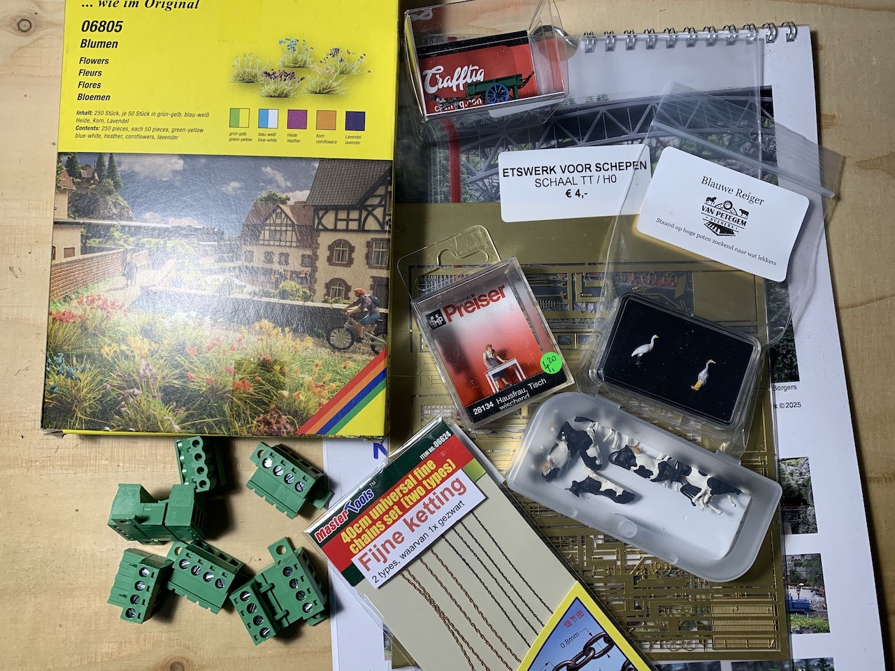 Reigers van Van Petegem, een fraaie hondenkar van Crafftiq, nog wat etsplaten bij Artitec gevonden, nog wat stekkertjes waarmee ik de RGB lichtlijsten mee wil koppelen, een kudde koeien (alleen ben ik nog wel van plan deze mat over te schilderen) en nog wat klein spul dat ik tegenkwam.
