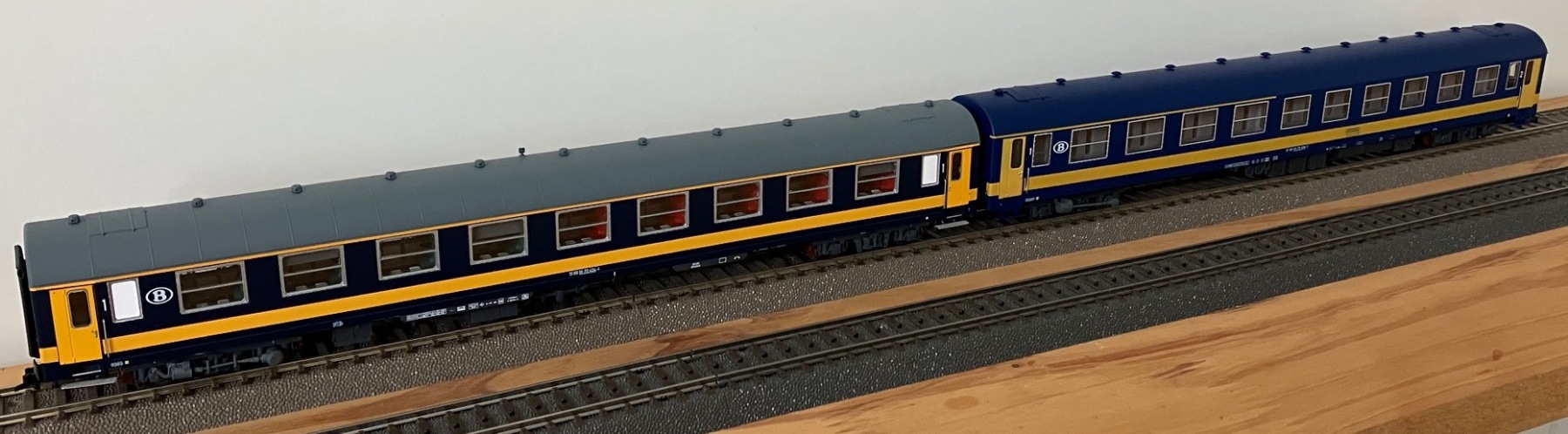 En de LS Models "oude" Benelux NMBS I4 A en AB rijtuigen.