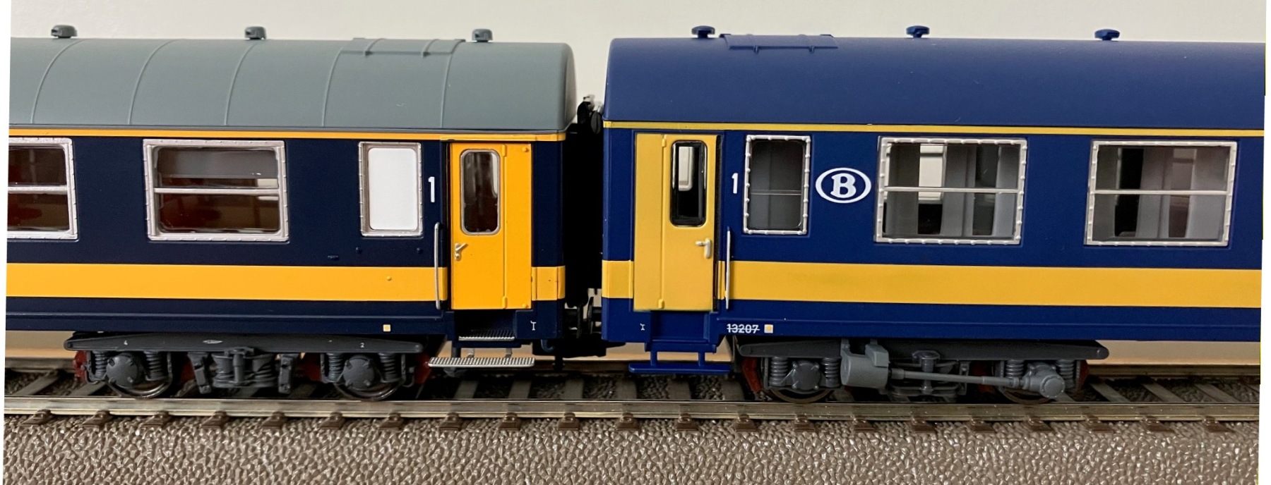 Het AB rijtuig gekoppeld aan een eveneens LS Models NS Plan W1 in Benelux kleuren (LS Models 44119).